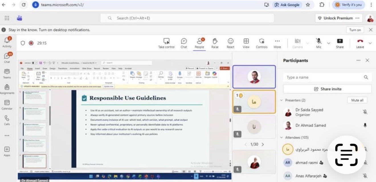 • ورشة في عمان الأهلية حول ضوابط استعمال الذكاء الاصطناعي في البحث العلمي والرسائل الجامعية