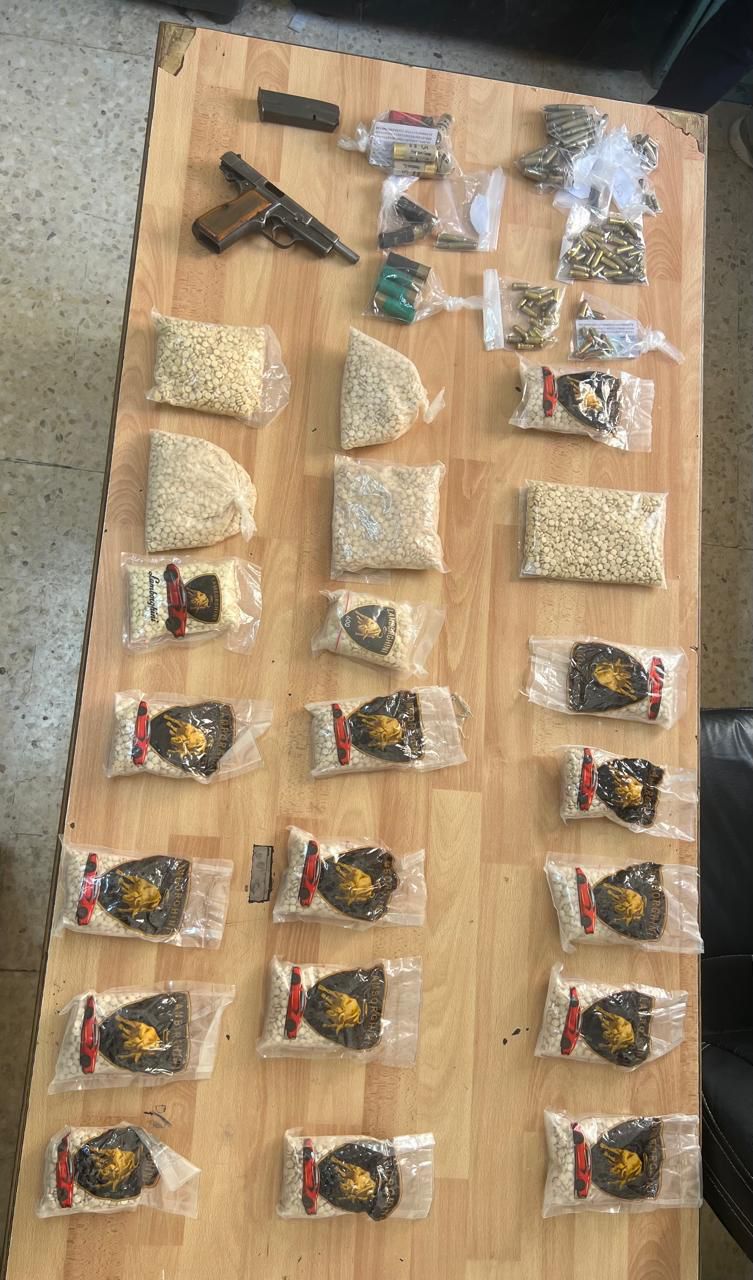 فيما تمكنت كوادر الإدارة في محافظة عجلون بعد تتبع وجمع المعلومات حول شخص مصنف بالخطر وبحقه 22 طلبا معظمها بقضايا المخدرات ، جرى تحديد مكان وجوده ومداهمته وإلقاء القبض عليه وبرفقته شخصان آخران وضُبط بحوزتهم 1500 حبة مخدرة وخمسة كفوف حشيش وكمية من مادة الكريستال المخدرة .