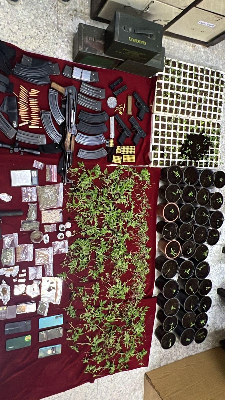 وفي محافظة جرش دوهم مطلوب بقضايا مخدرات ومصنف بالخطر ومتوارٍ عن الأنظار، وبعد كمين محكم أُلقي القبض عليه وضبط بحوزته كمية من المواد المخدرة ، كما أُلقي القبض في محافظة إربد على شخص قام بزراعة كمّيات من أشتال الماريجوانا المخدرة وضُبط داخل الأرض المستخدمة 300 شتلة من الماريجوانا .