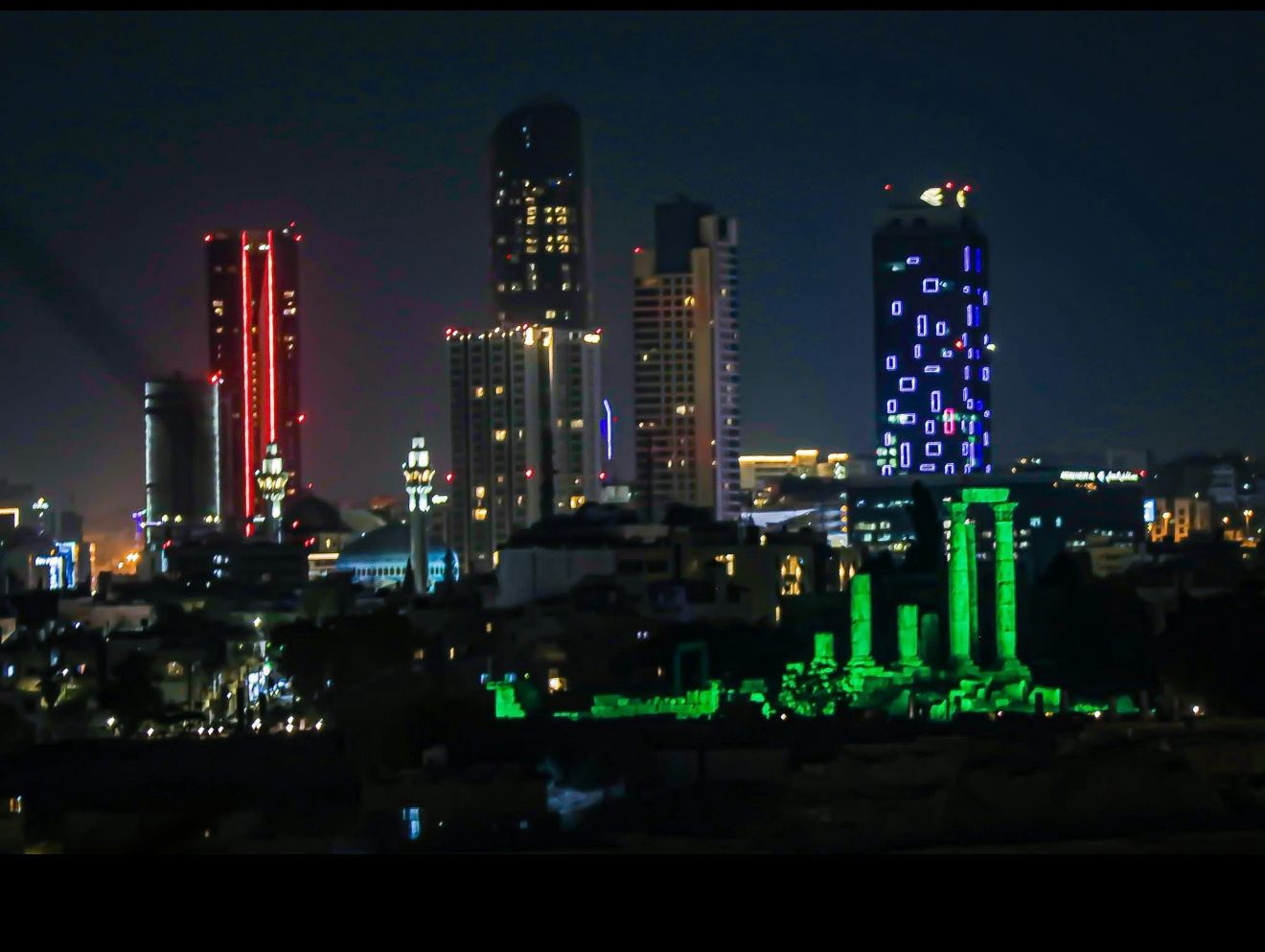 السفارة السعودية والعاصمة عمّان تتوشّح بالأخضر.. والمدرج الروماني وأبرز مياديين وشوارع العاصمة الأردنية تتزيّن احتفاءً باليوم الوطني السعودي الـ95