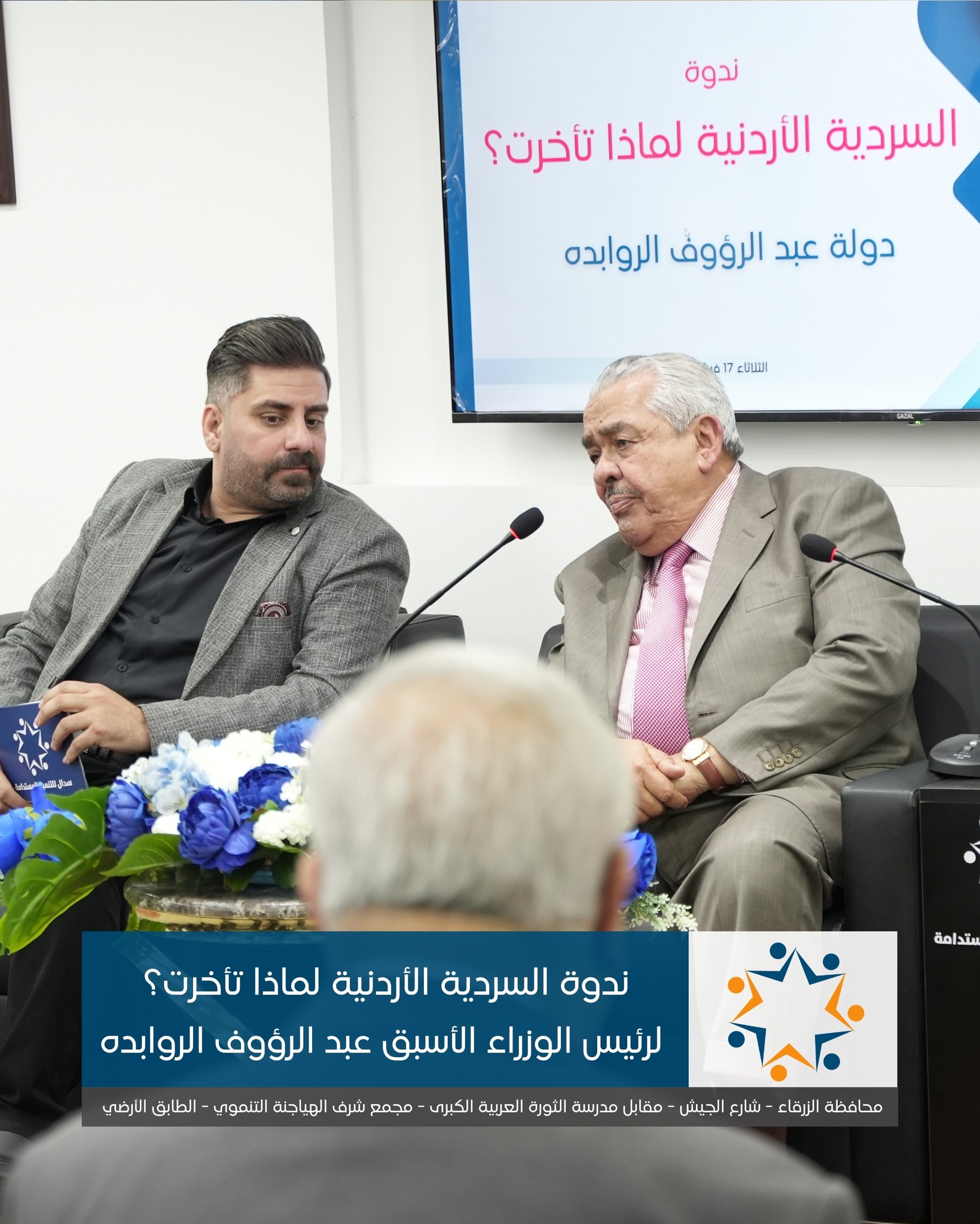جاء ذلك خلال ندوة فكرية بعنوان: "السردية الأردنية.. لماذا تأخرت؟"، نظمتها مؤسسة سدال للتنمية المستدامة في مقرها ضمن مجمع شرف الهياجنة الخيري التنموي، والذي افتتحه الروابدة مساء اليوم الثلاثاء، بمناسبة عيد ميلاد جلالة الملك عبدالله الثاني الـ 64، وذكرى يوم الوفاء والبيعة.
