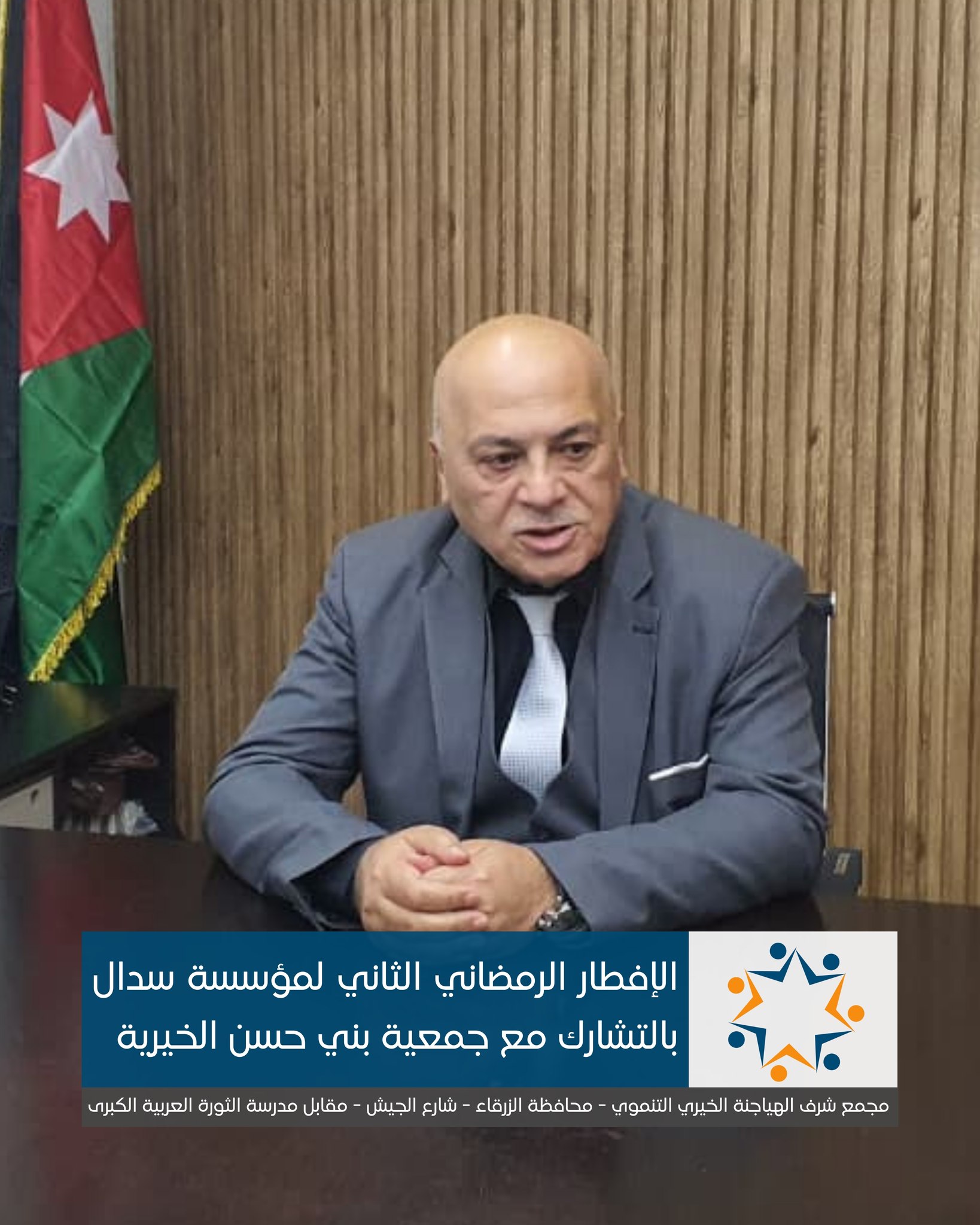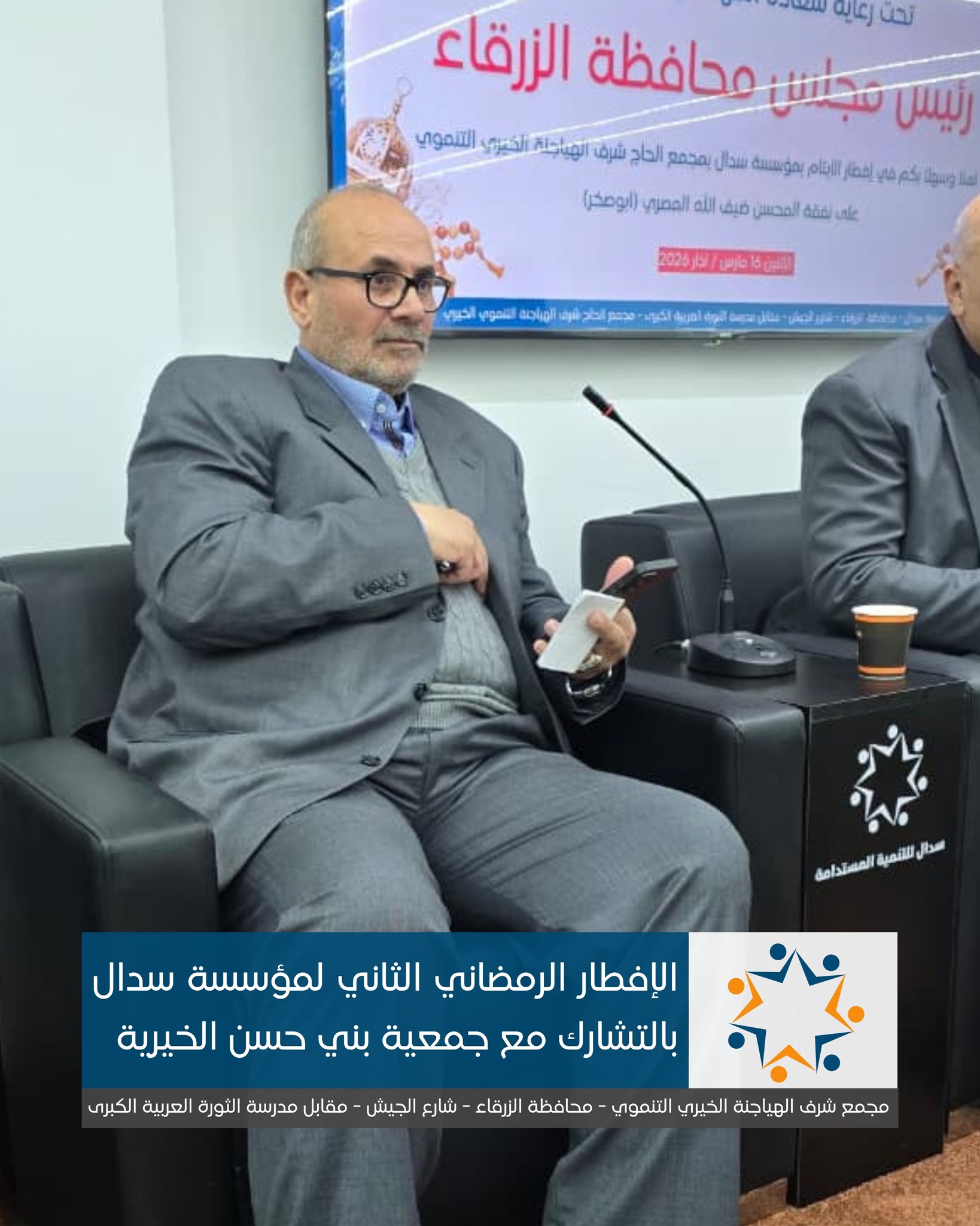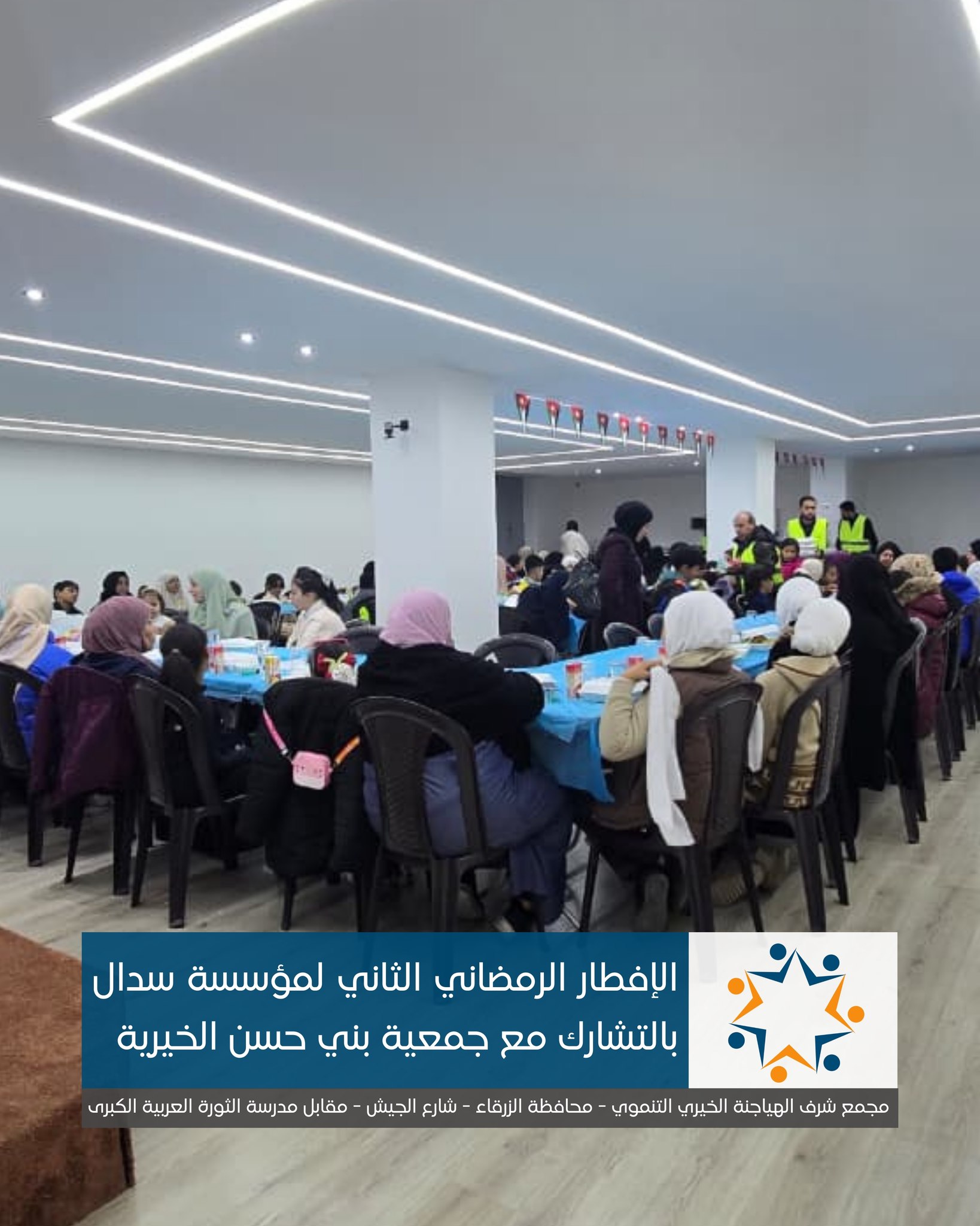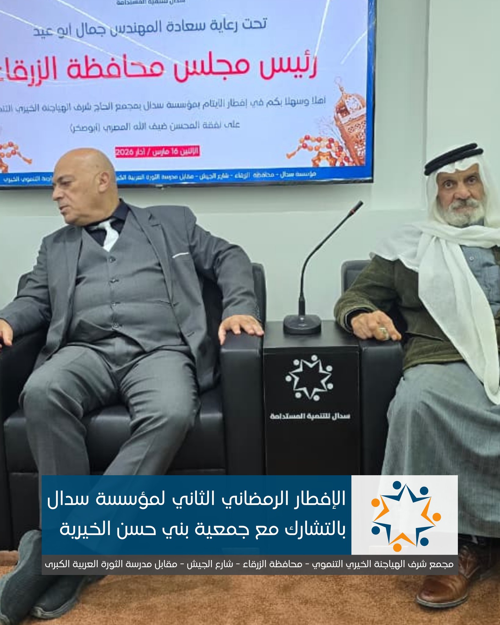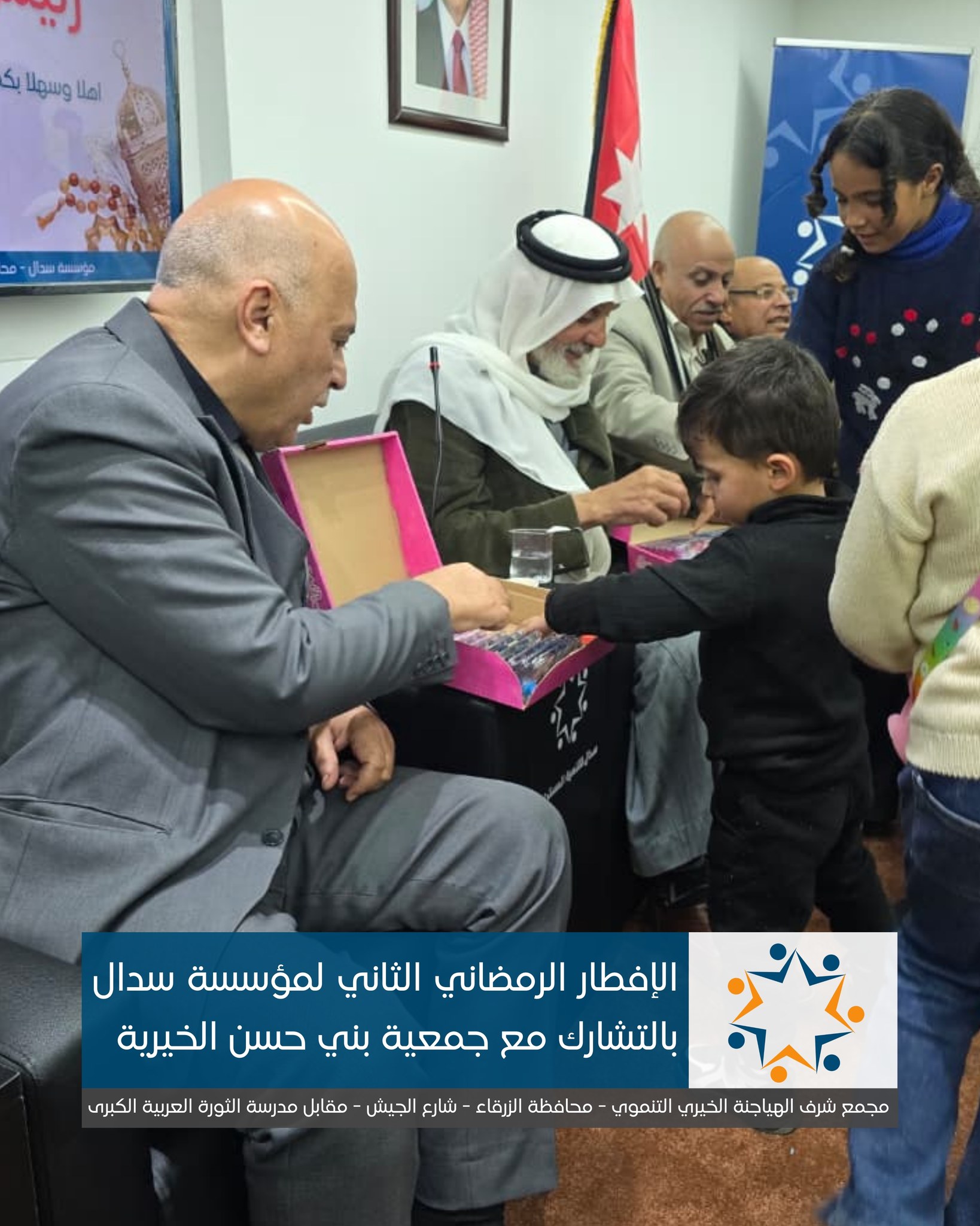 رعى رئيس مجلس محافظة الزرقاء، المهندس جمال أبو عيد، الإفطار الرمضاني الذي أقامته مؤسسة سدال للتنمية المستدامة في مجمع الحاج شرف الهياجنة الخيري التنموي بمحافظة الزرقاء، بالشراكة مع جمعية بني حسن الخيرية.