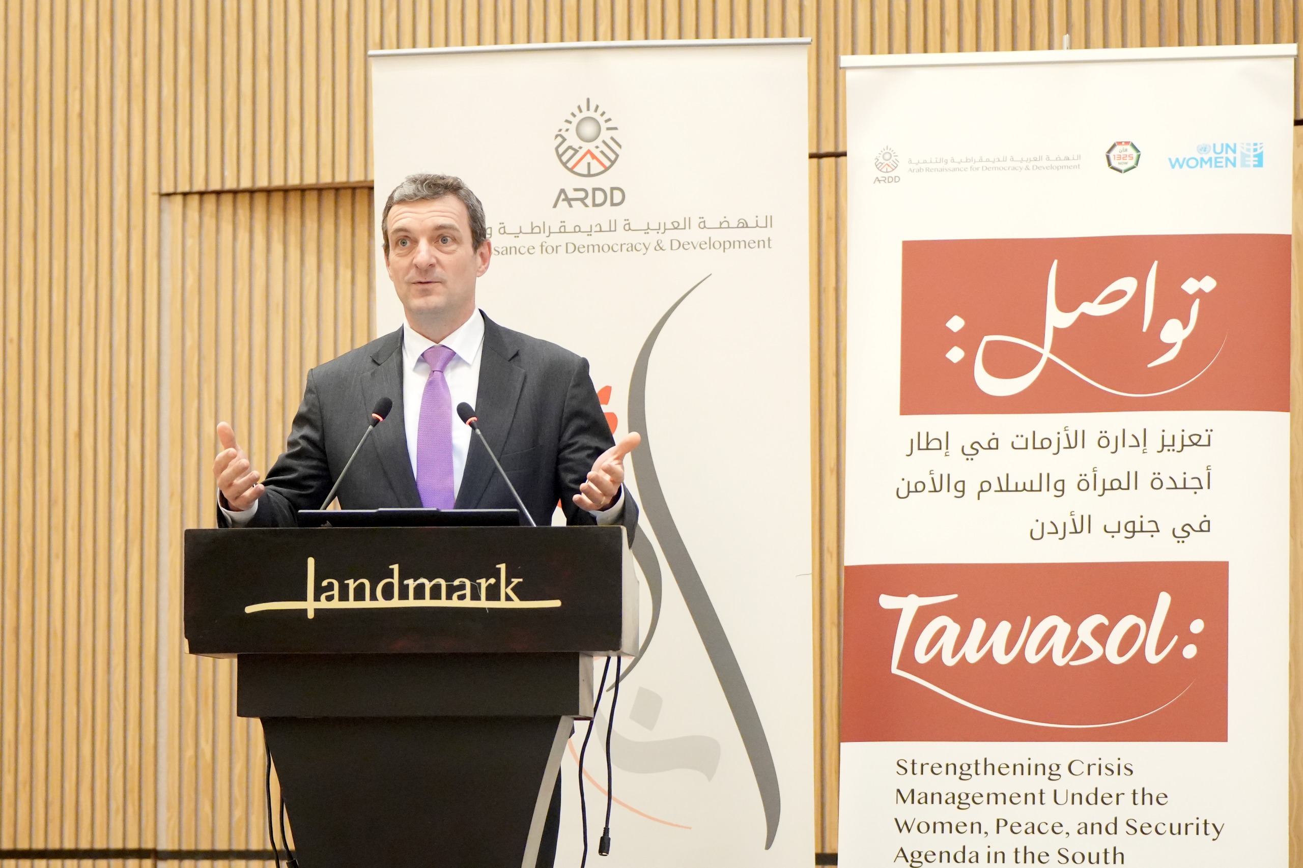 عقدت النهضة العربية للديمقراطية والتنمية (أرض)، بالشراكة مع هيئة الأمم المتحدة للمرأة، حوارًا وطنيًا بتاريخ 7 نيسان/أبريل 2026 في فندق لاندمارك عمّان، وذلك بمناسبة مرور 25 عامًا على أجندة المرأة والسلام والأمن، وبهدف توفير منصة للتأمل في المقاربات المحلية للاستجابة للأزمات وتعزيز التماسك الاجتماعي في الأردن.