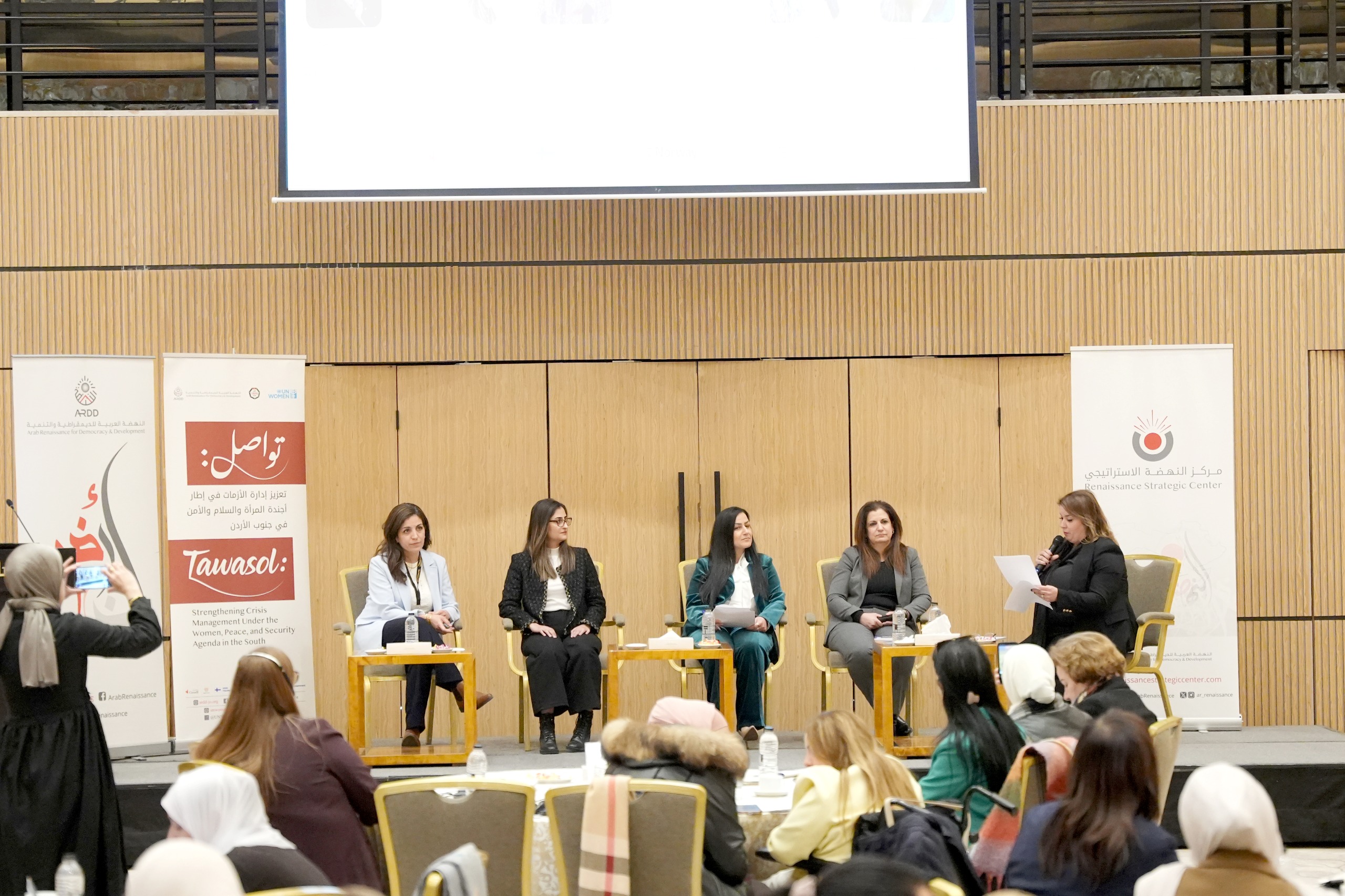 ويأتي هذا الحوار ضمن مبادرة "تواصل – تعزيز إدارة الأزمات"، التي تنفذها النهضة (أرض) ضمن برنامج وصول المرأة إلى العدالة، بالشراكة مع هيئة الأمم المتحدة للمرأة، وبدعم من الصندوق المشترك للخطة الوطنية الأردنية لتطبيق القرار 1325.