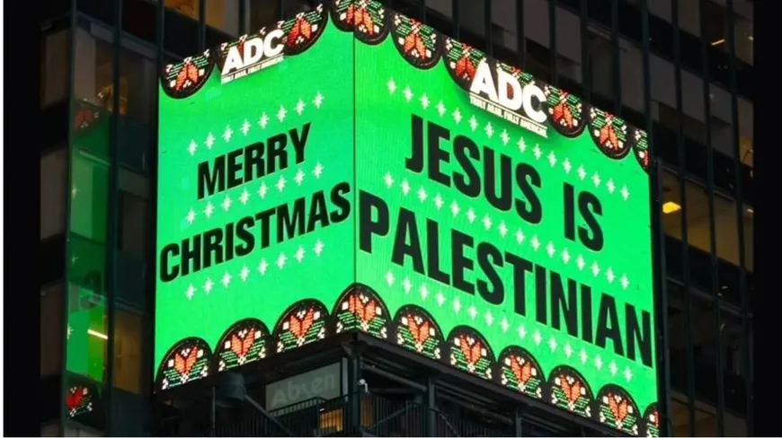 المسيح فلسطيني – لوحة إعلانية وسط نيويورك – شاهد