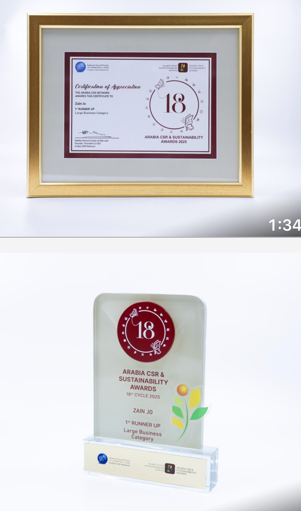 زين الأردن تحصد جائزة الاستدامة والمسؤولية المجتمعية العربية لعام 2025