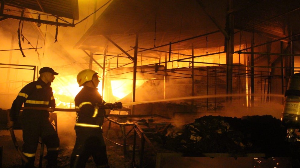 اخماد حريقاً كبيرا في سوق البالة بإربد