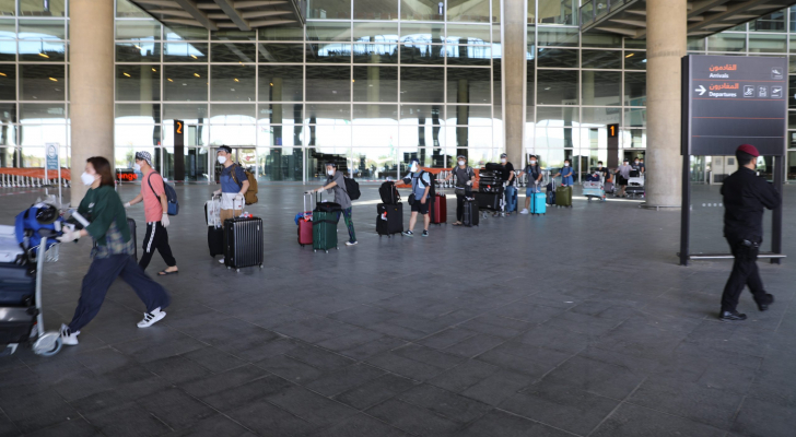 مسافرون  يعودون إلى منازلهم بعد اغلاق الاجواء والغاء الرحلات وتحويل مسار القادمة الى الاردن