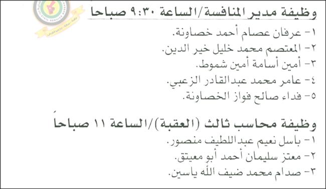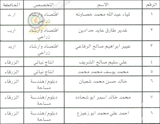 كما دعت وزارة الزراعة التالية اسماؤهم إلى مراجعة الوزارة الثلاثاء المقبل، لإجراء مقابلات شخصية لغايات التعيين.