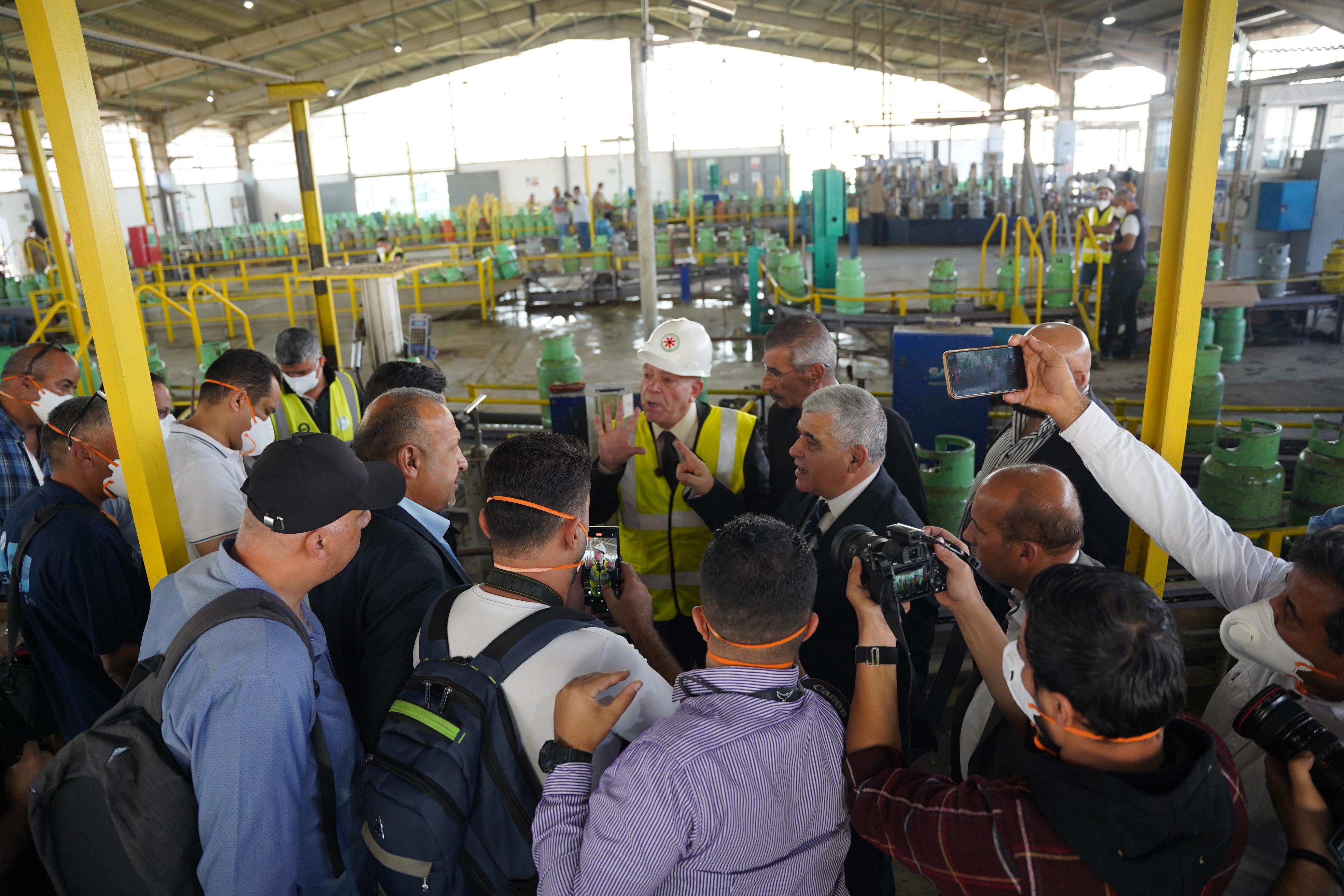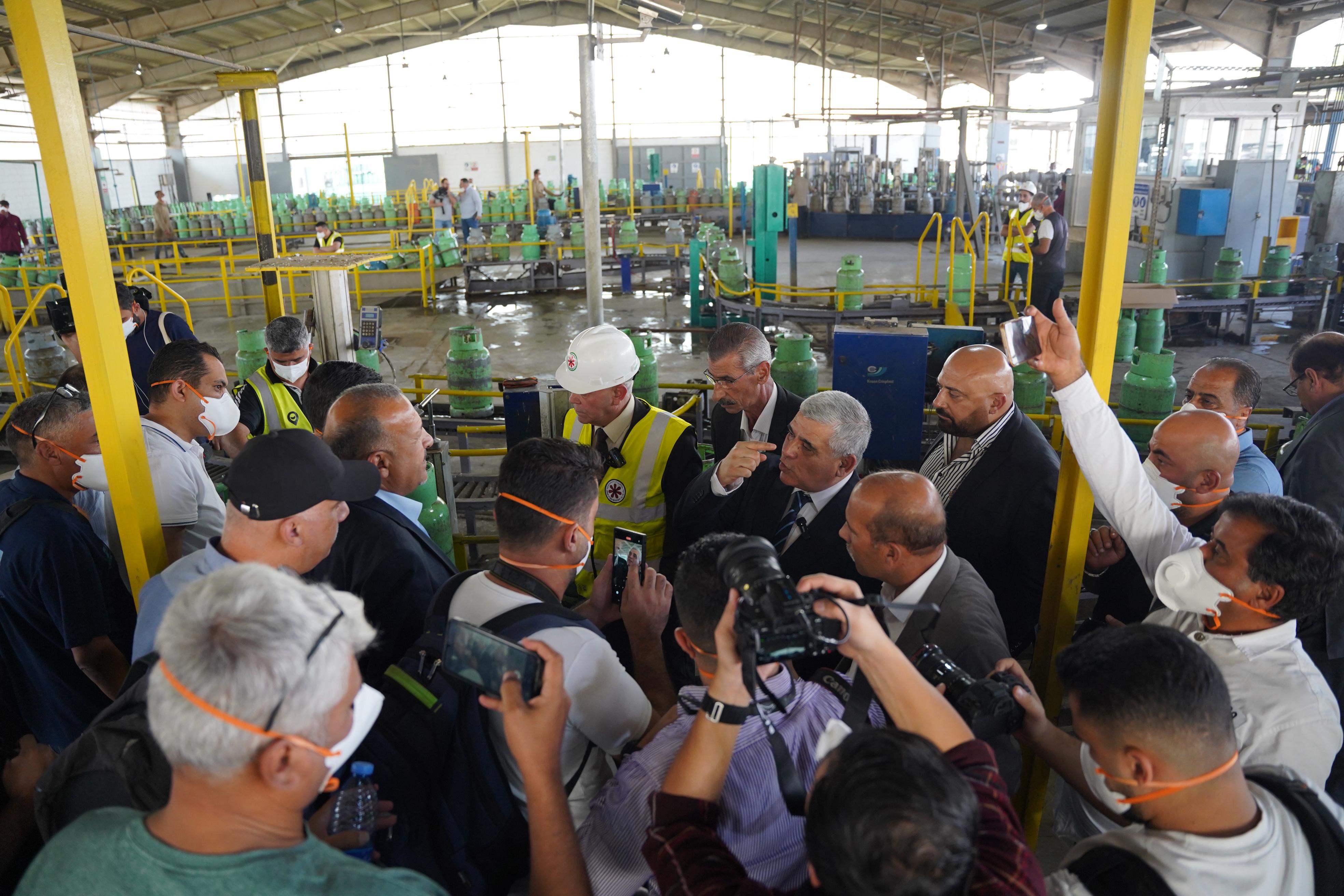 الصحفيون والاعلاميون يطّلعون في محطة تعبئة غازعمان – أبو علندا على مراحل التعبئة الدقيقة والفحصالفني والتنظيف والمعايرة للأسطوانات