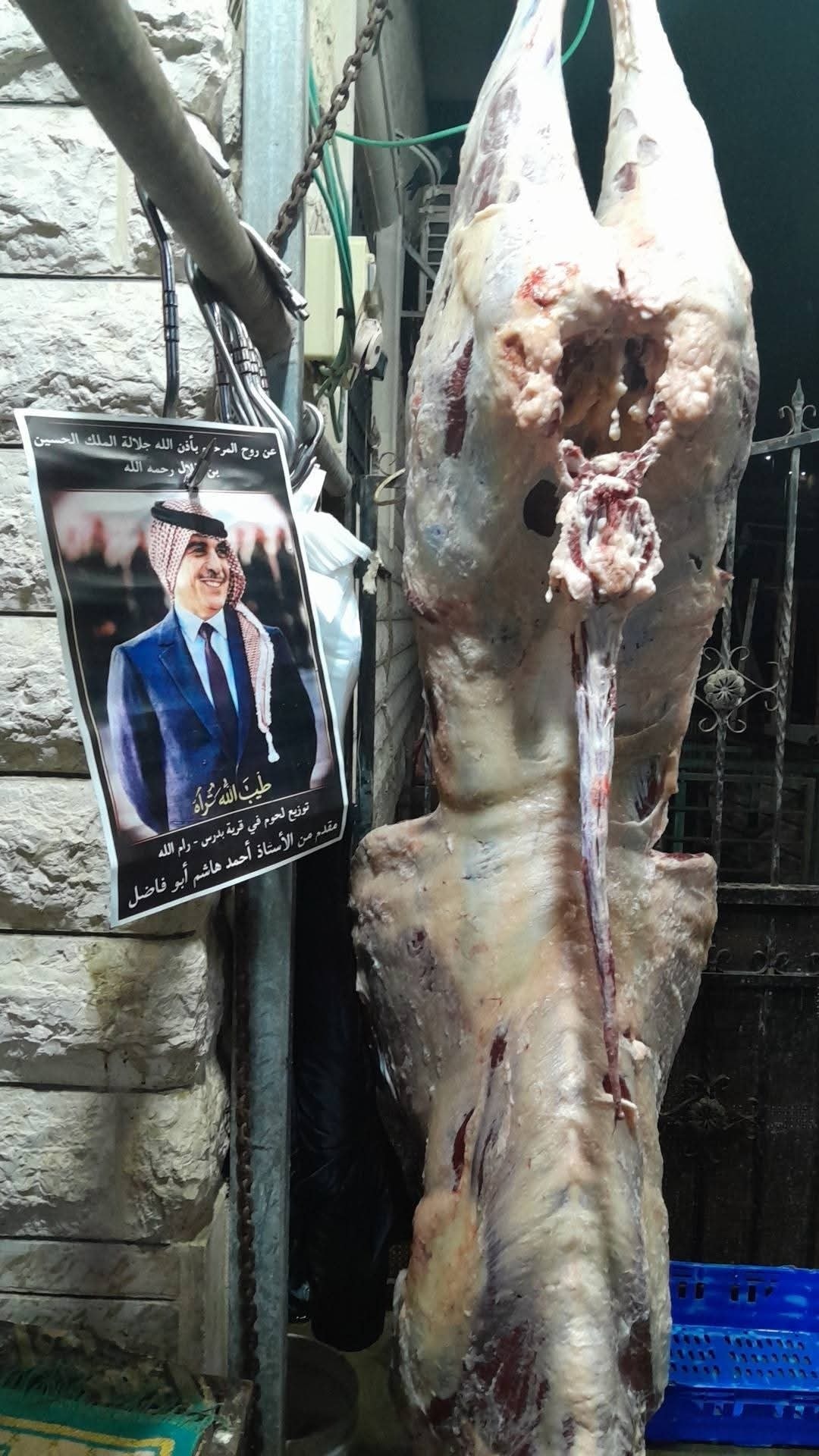 نشرابناء قرية بدرس قضاء مدينة رام الله الفلسطينية صورا لاضحية تم تقديمها عن روح الملك الحسين بن طلال طيب الله ثراه